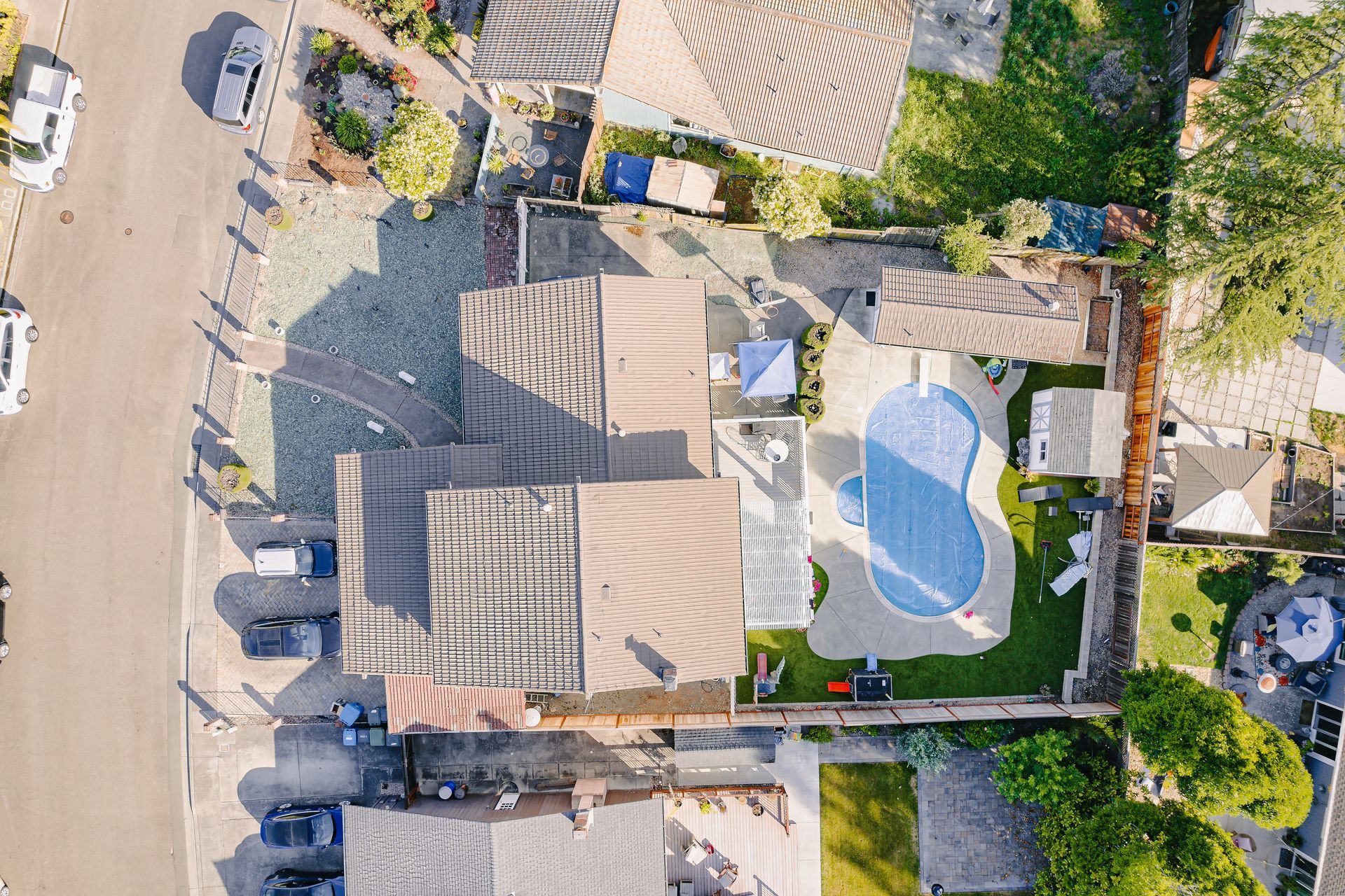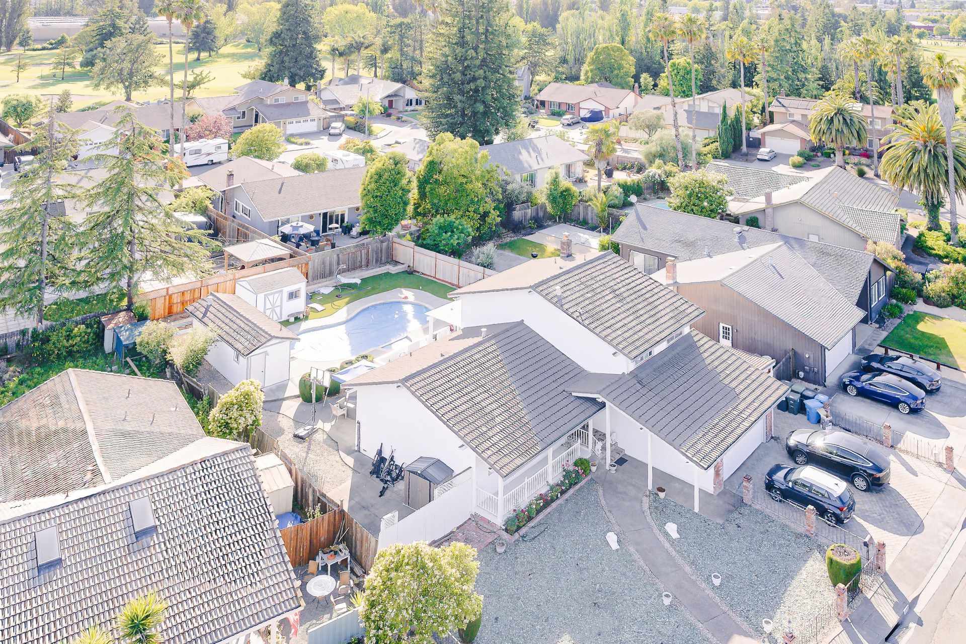 Nestled in the highly sought-after D section, this home perfectly blends indoor and outdoor living. The spacious side yard offers a gate wide enough to accommodate an RV, while the expansive backyard features a new fence, a heated swimming pool with a hot tub, a fully plumbed pool house with a bathroom & shower, two sheds, planters for avid gardeners, and ample space for outdoor entertainment. The main level boasts a roomy living room with vaulted ceilings and wide windows, a formal dining room, and a large kitchen that steps down to a cozy recreational room. A conveniently located bedroom is also found on this level. Upstairs, discover three generously sized bedrooms, two bathrooms and a hallway linen closet. The primary bedroom features two closets, a dressing room, and a beautifully remodeled bathroom. This home includes a two-car garage with interior access and an indoor laundry area for added convenience. Situated on almost a 1/4-acre lot, there is potential for an Accessory Dwelling Unit (ADU), though buyers should verify the possibilities. Don't miss the chance to make this extraordinary house your forever home.